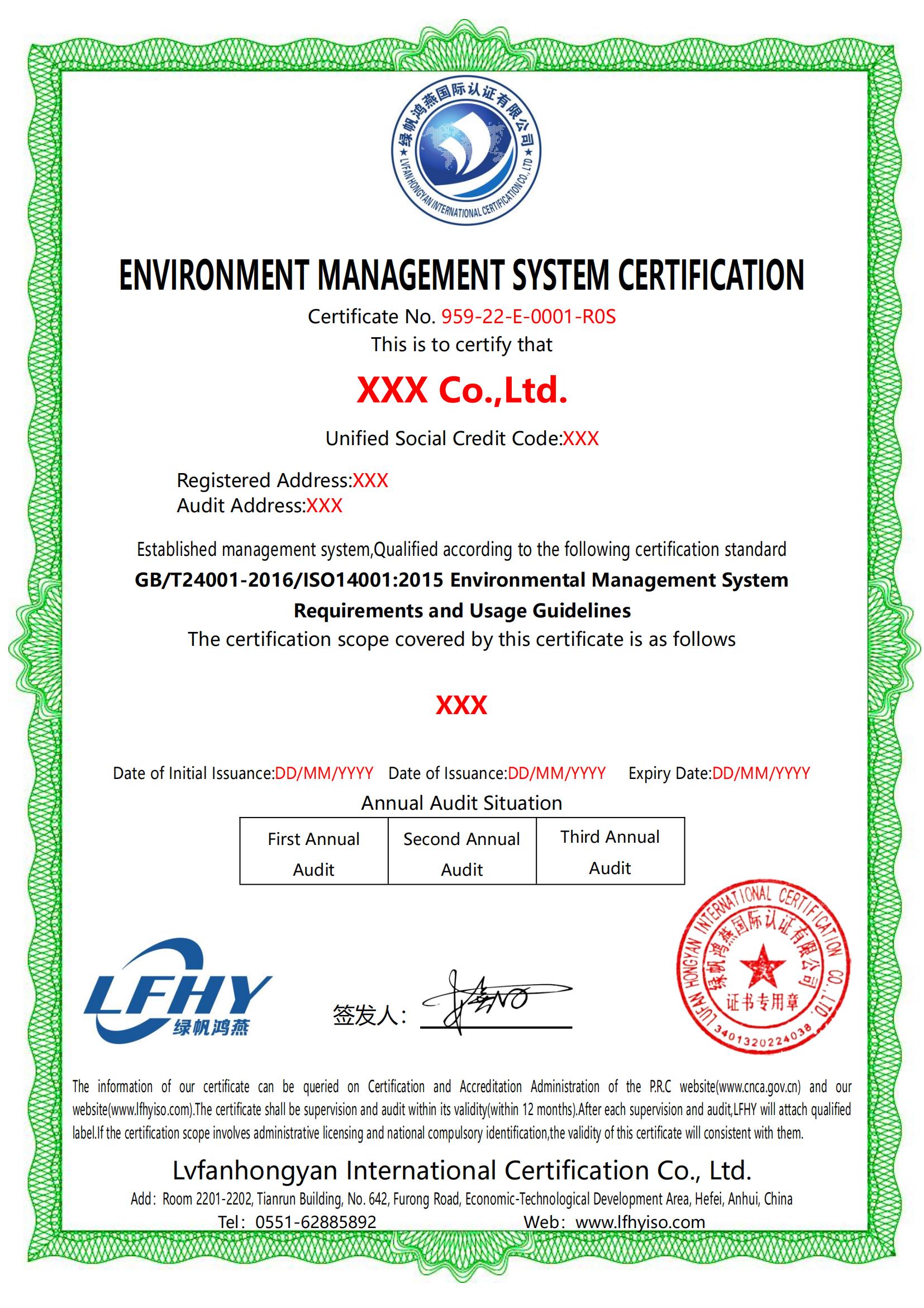 認證證書樣本【EMS】
