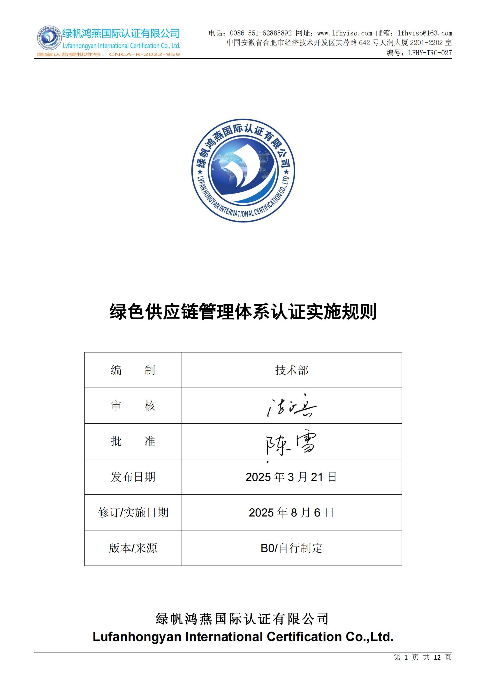LFHY-TRC-027《綠色供應鏈管理體系認證實施規則》