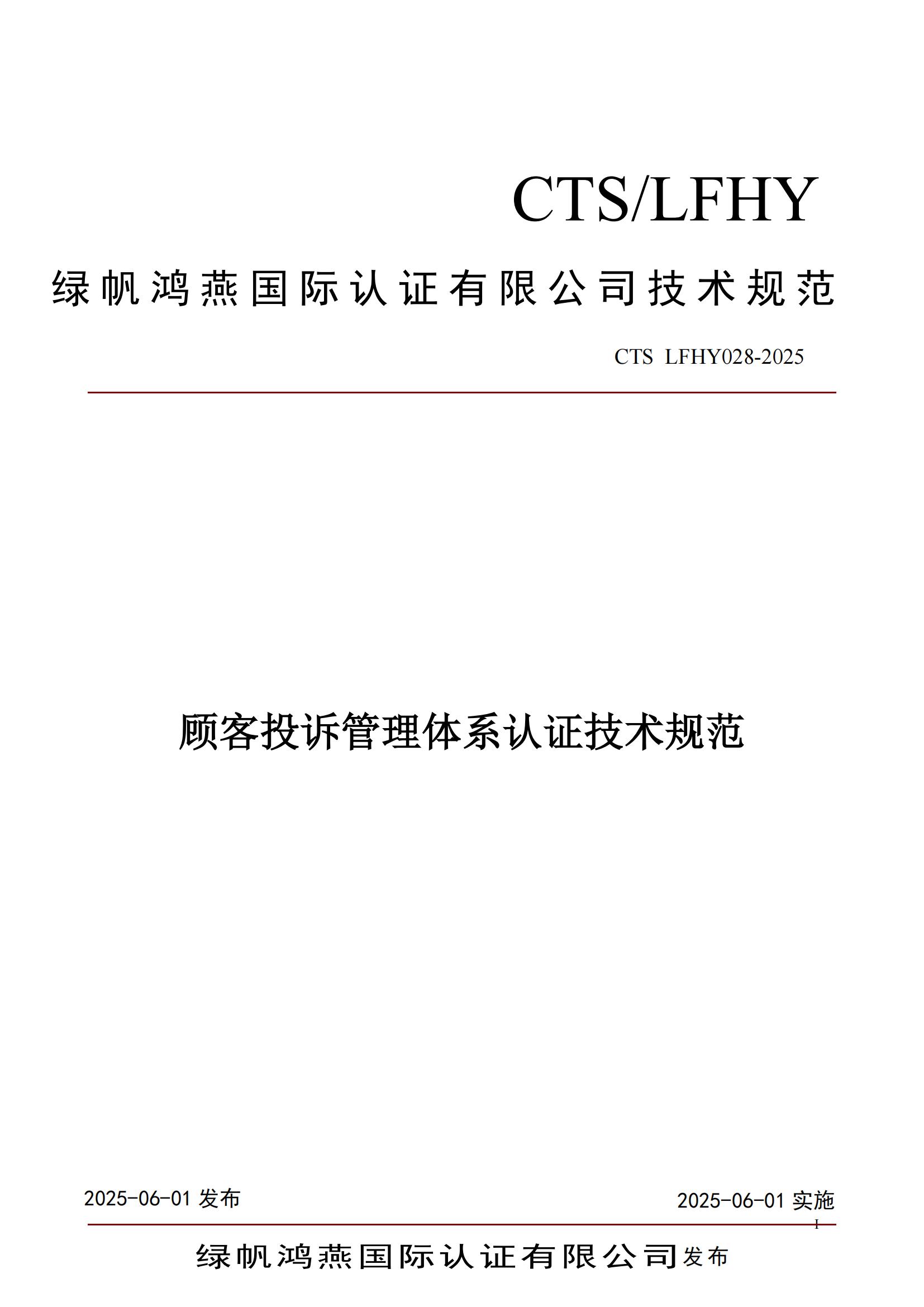 CTS LFHY028-2025《顧客投訴管理體系認證技術規范》