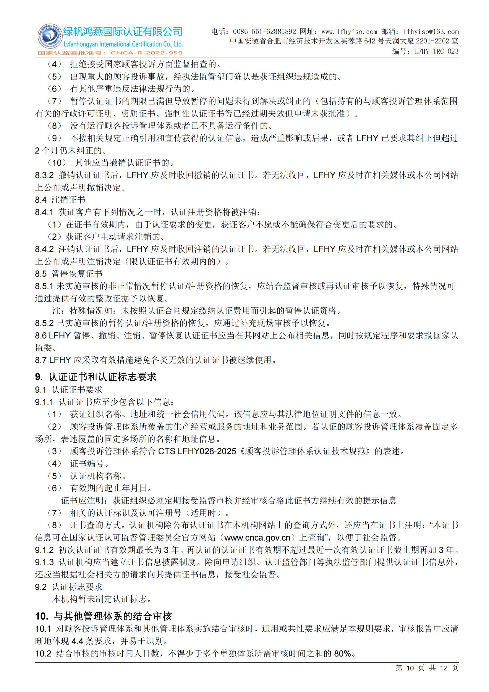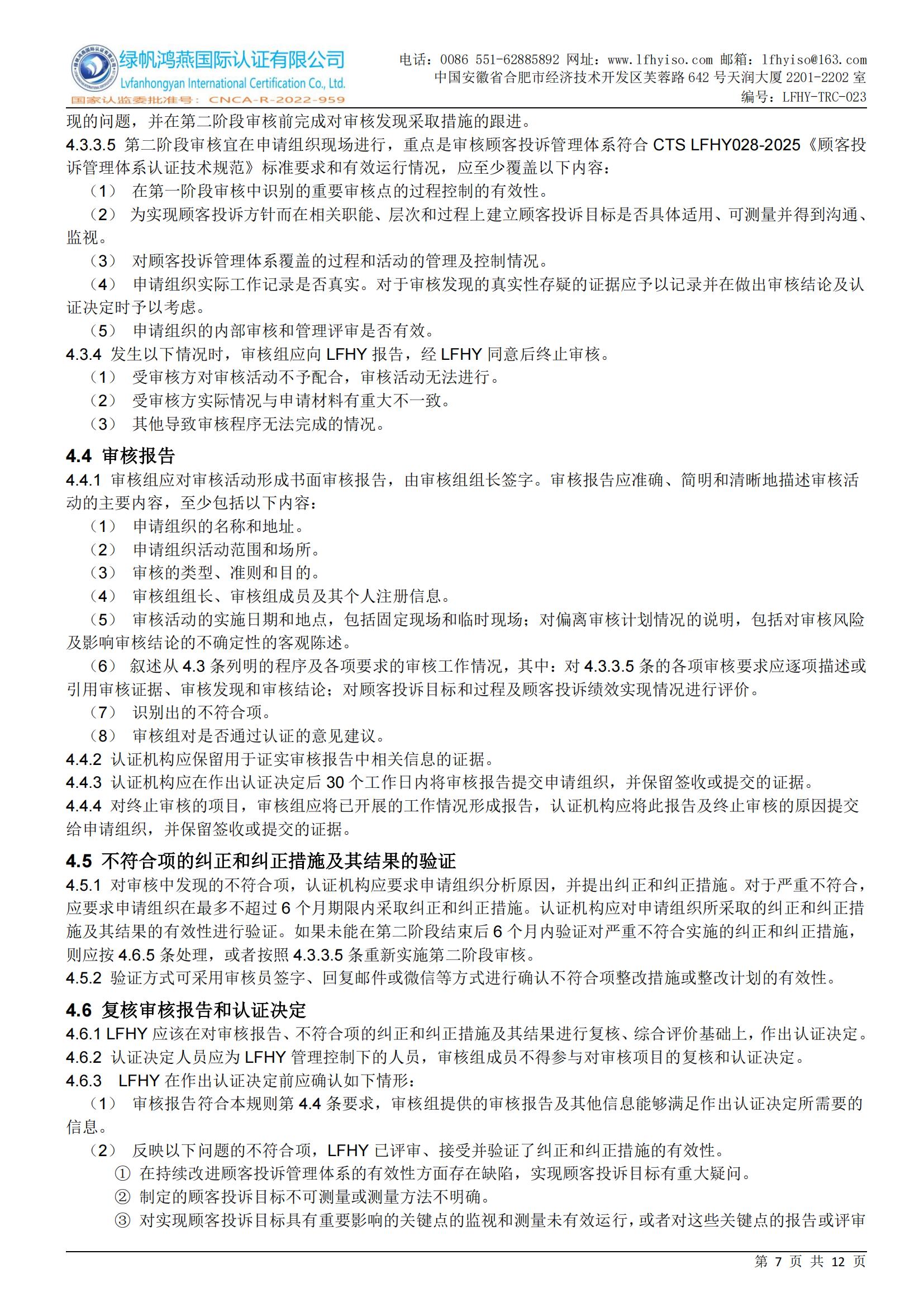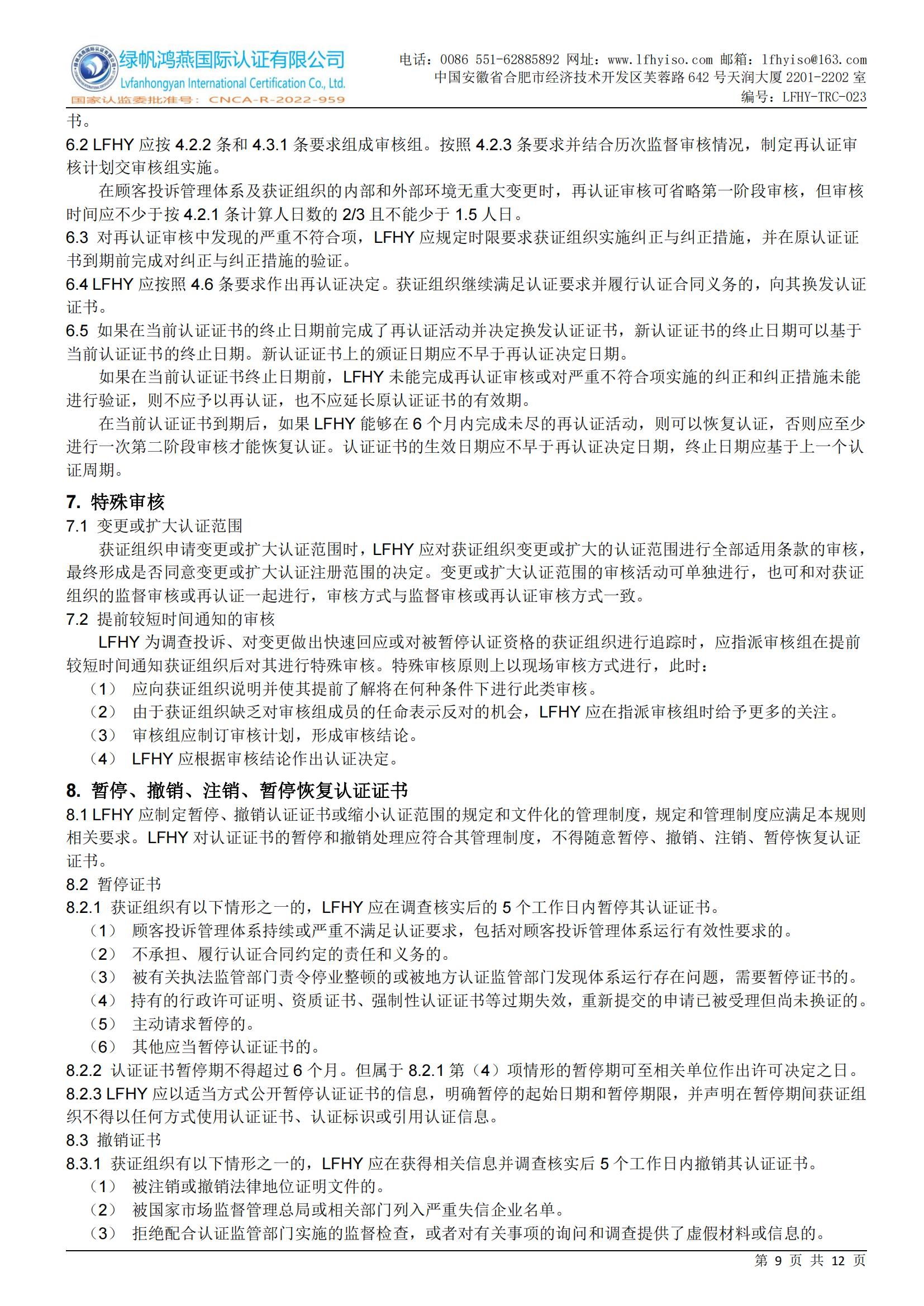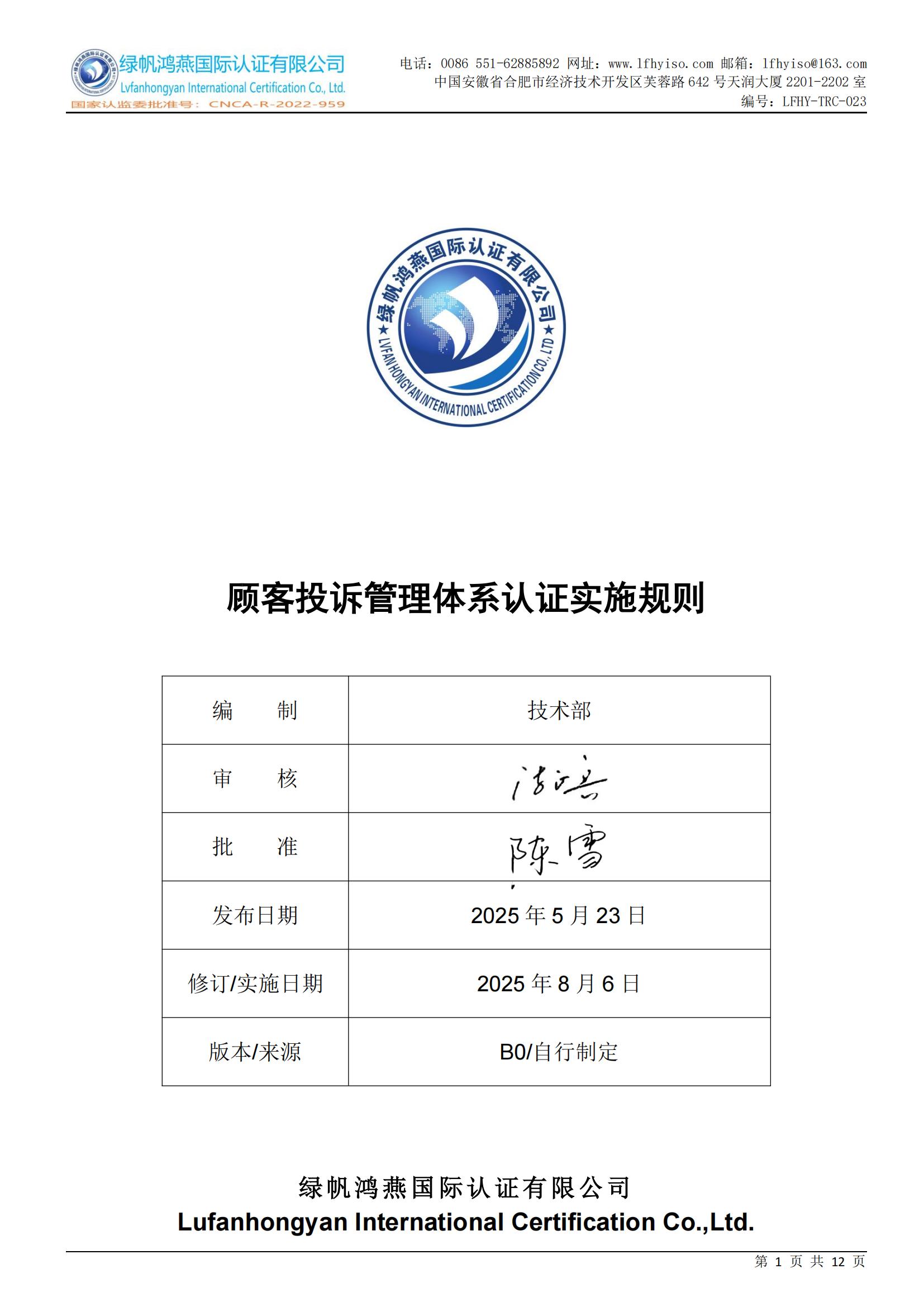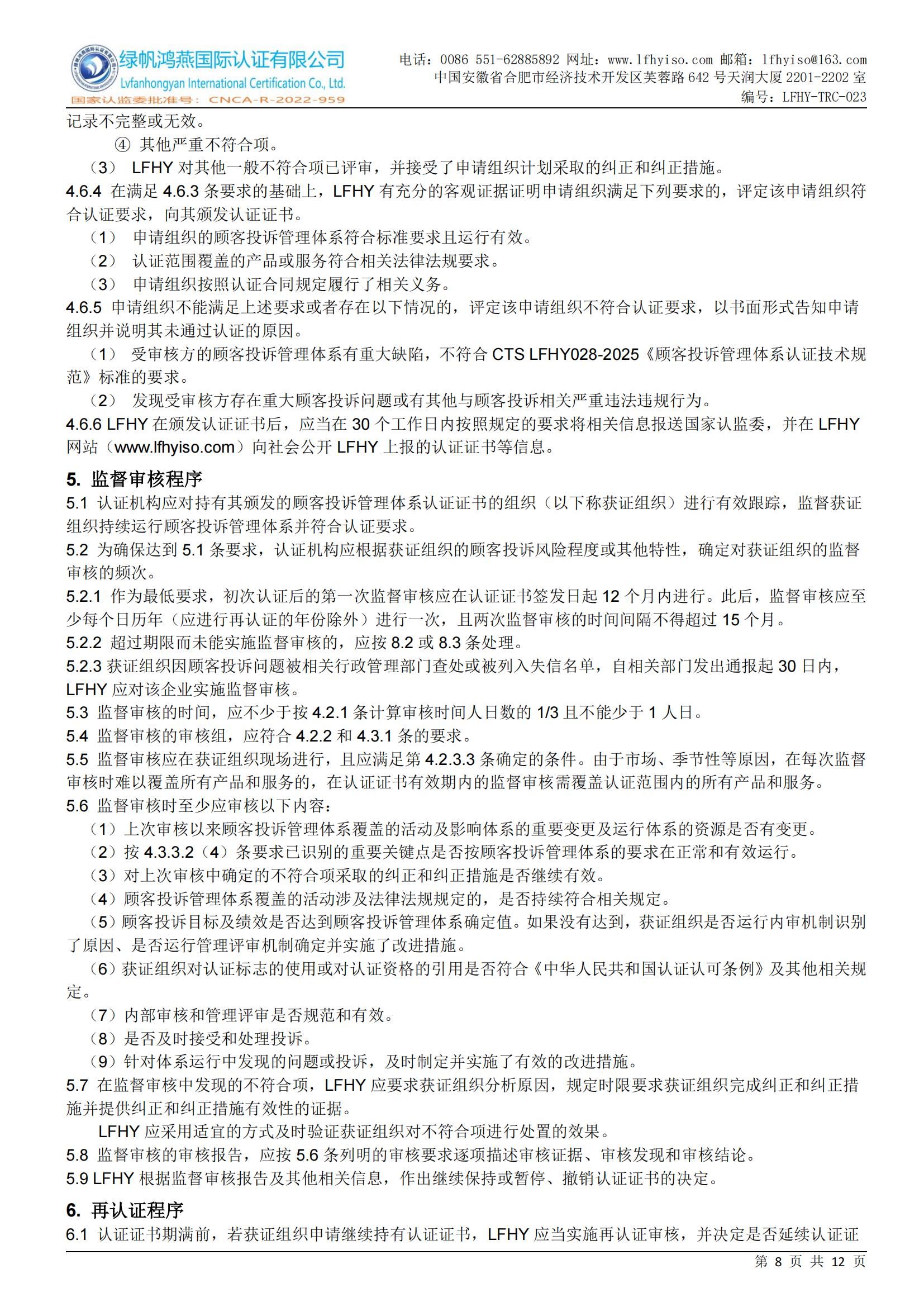 LFHY-TRC-028《顧客投訴管理體系認證實施規則》