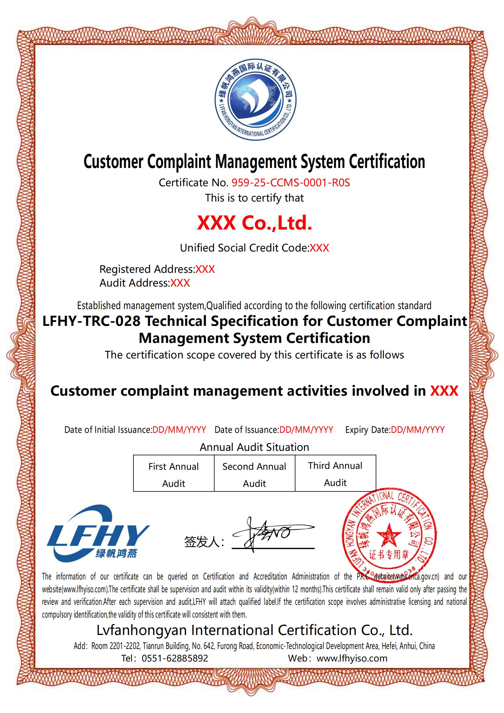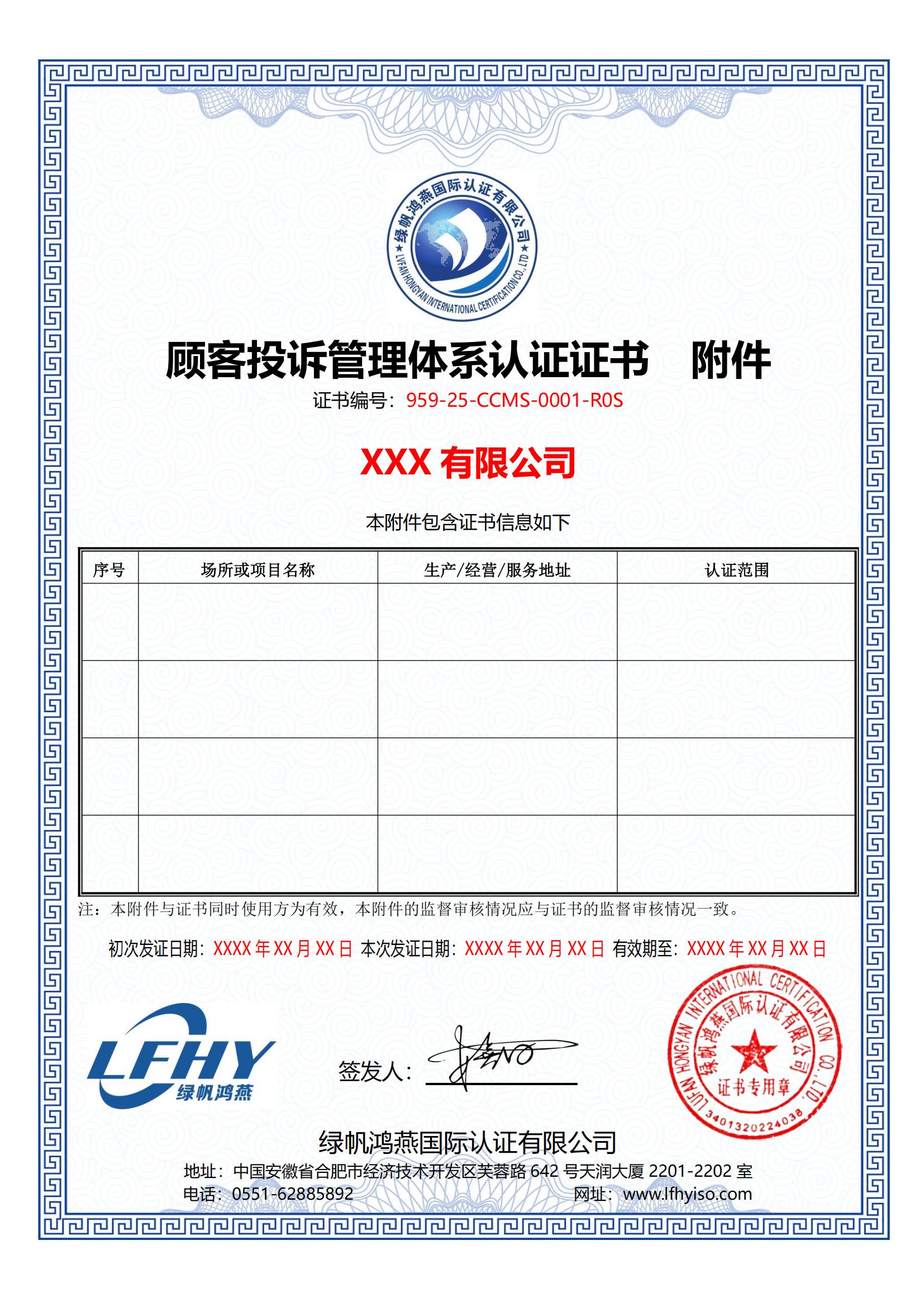 《顧客投訴管理體系認(rèn)證證書(shū)》