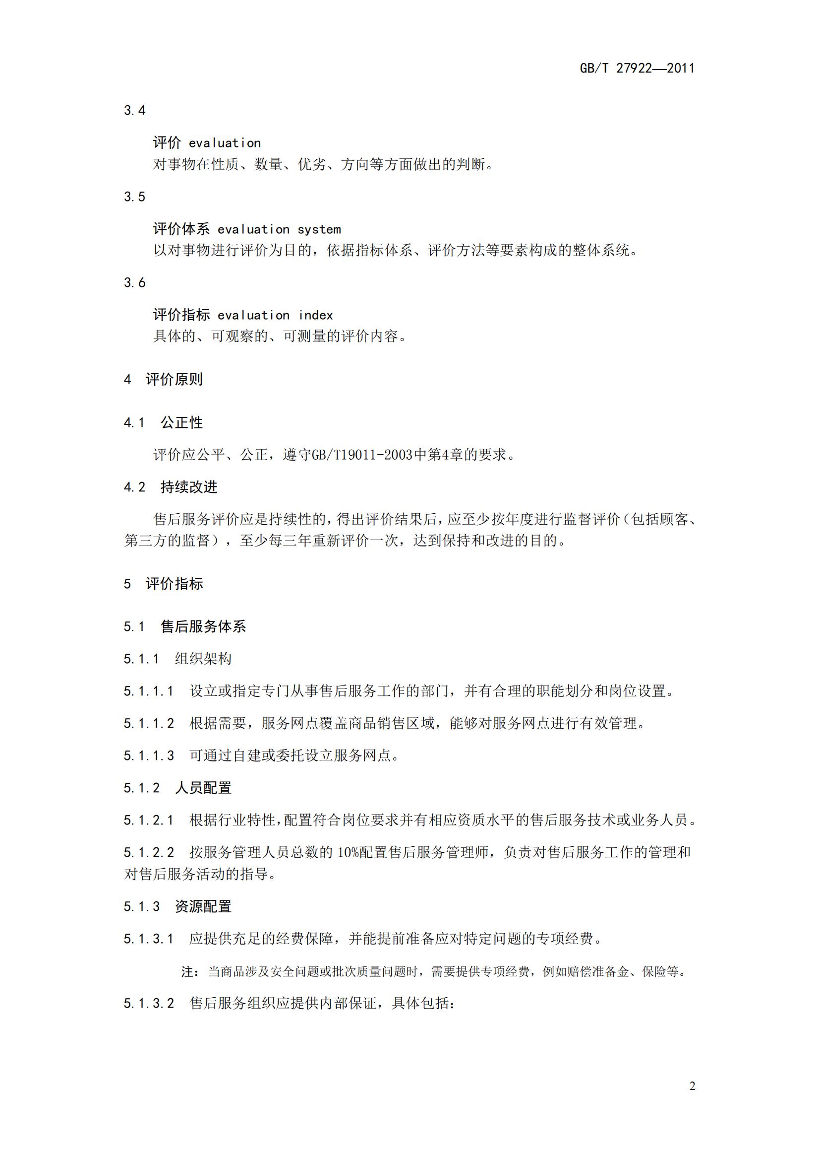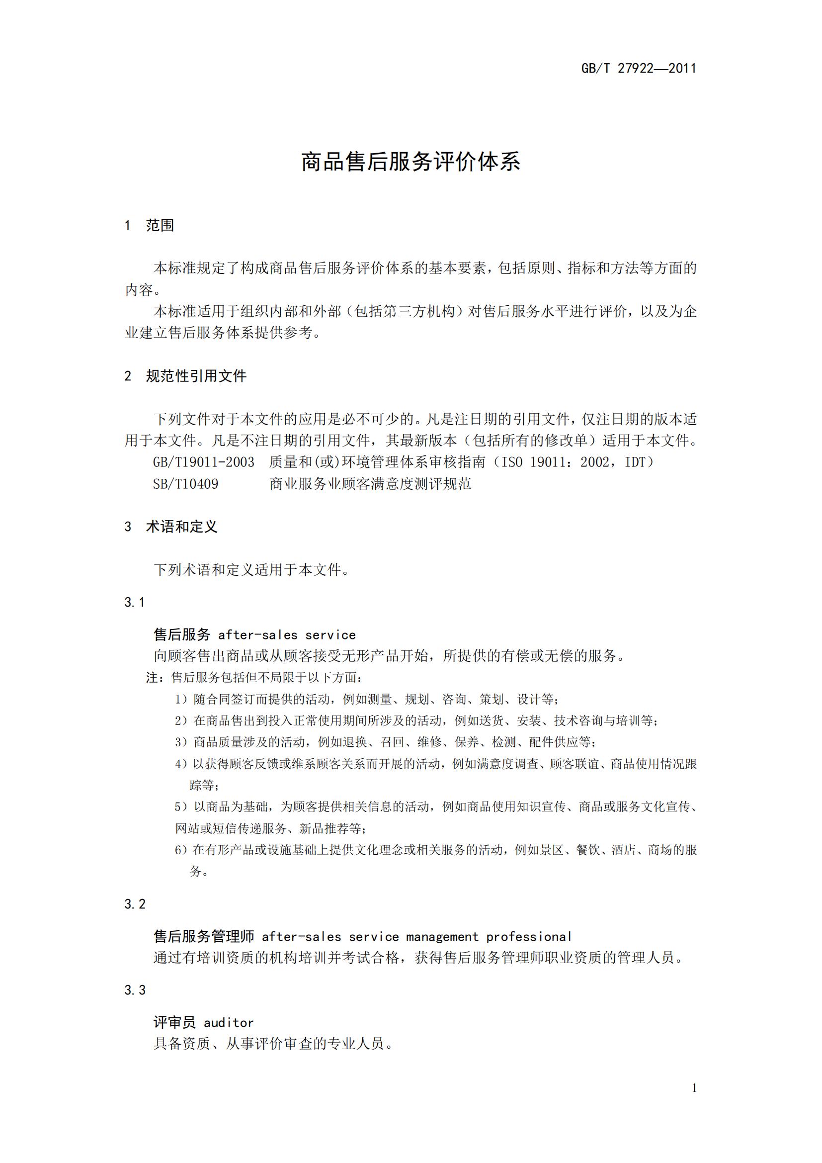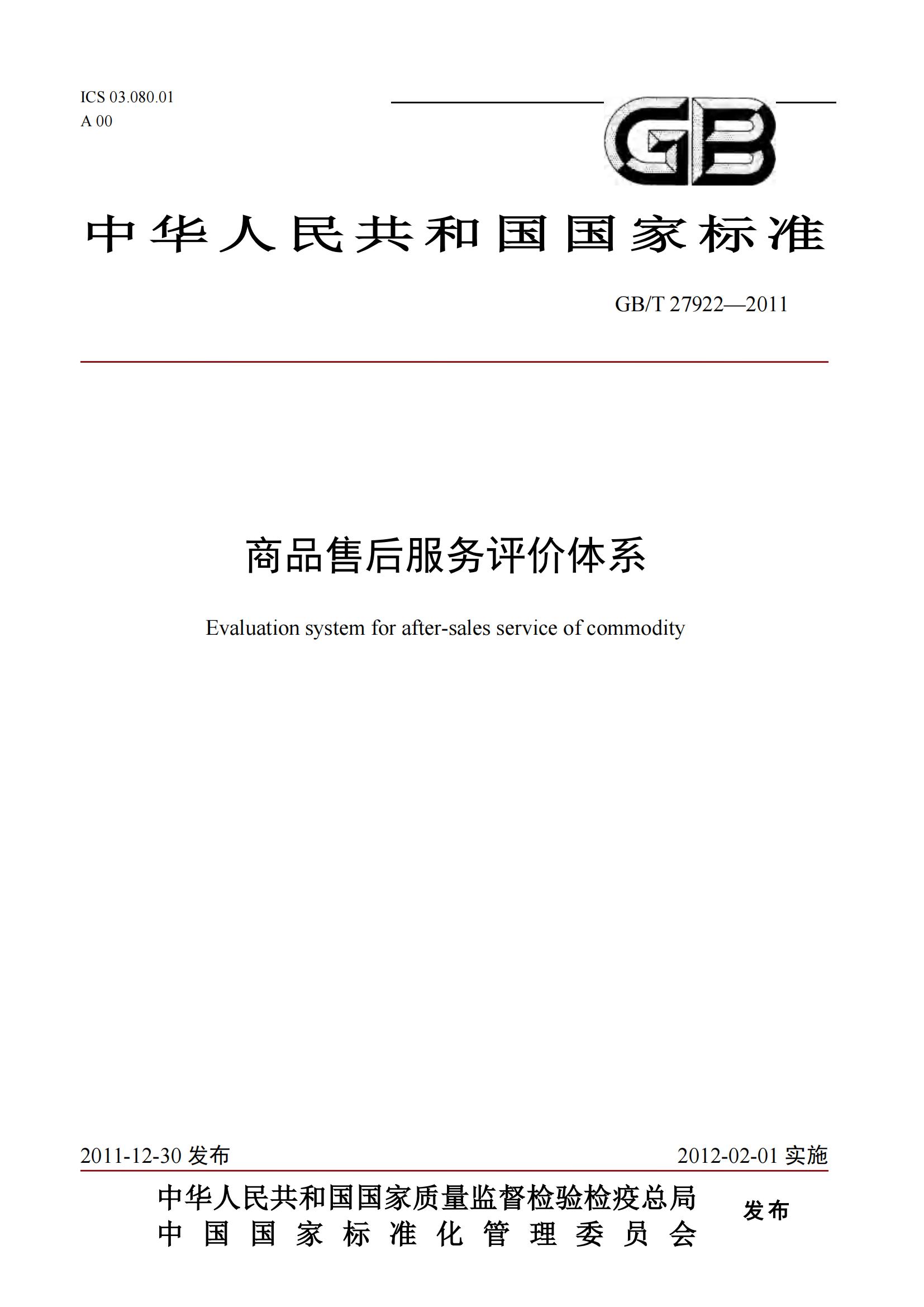 GB/T27922-2011《商品售后服務(wù)評價體系》