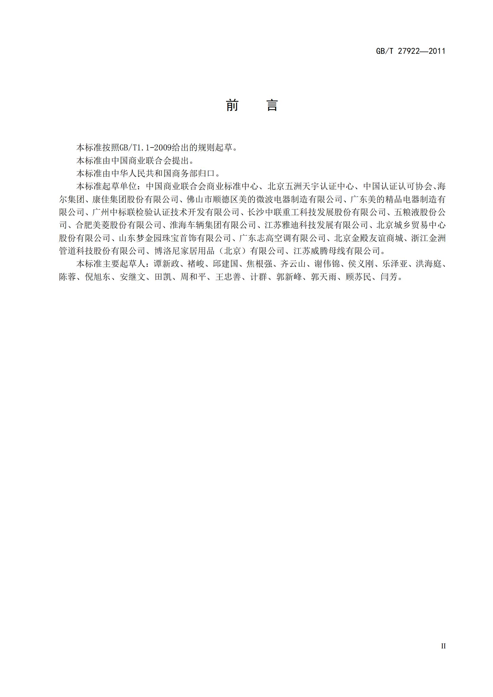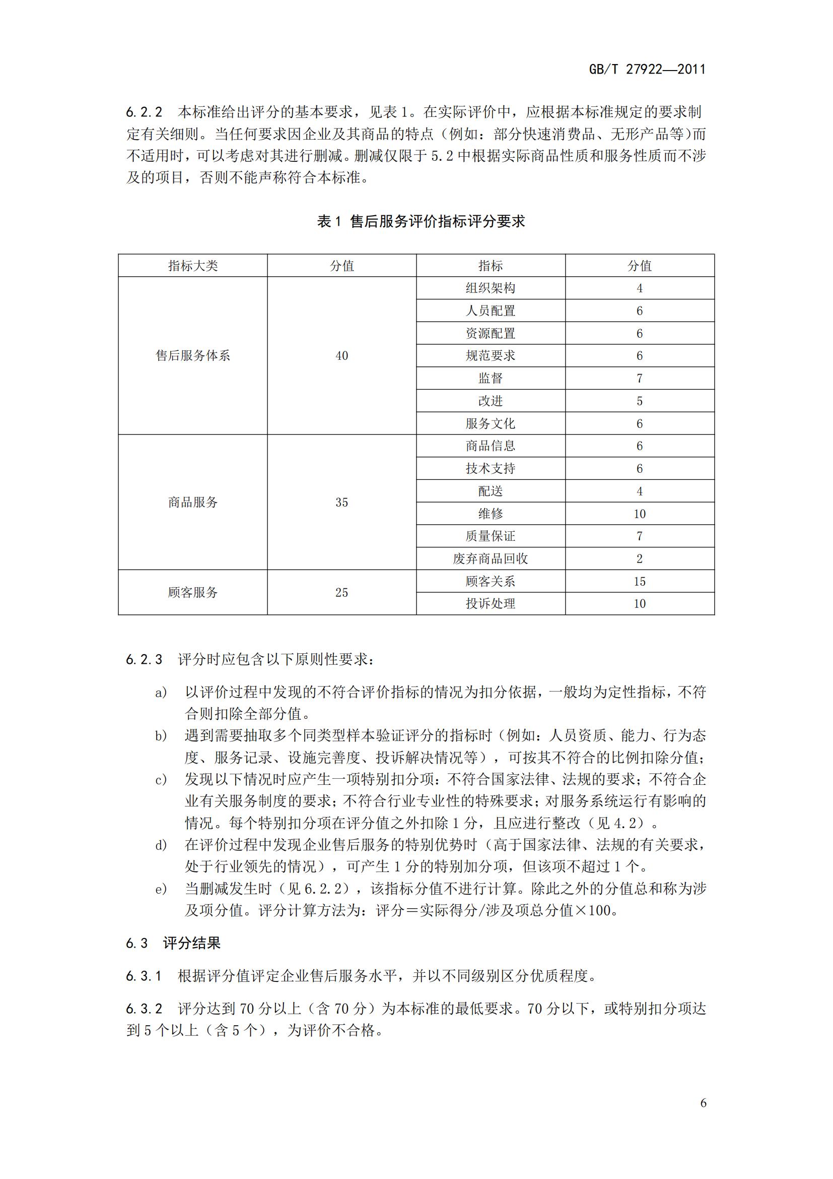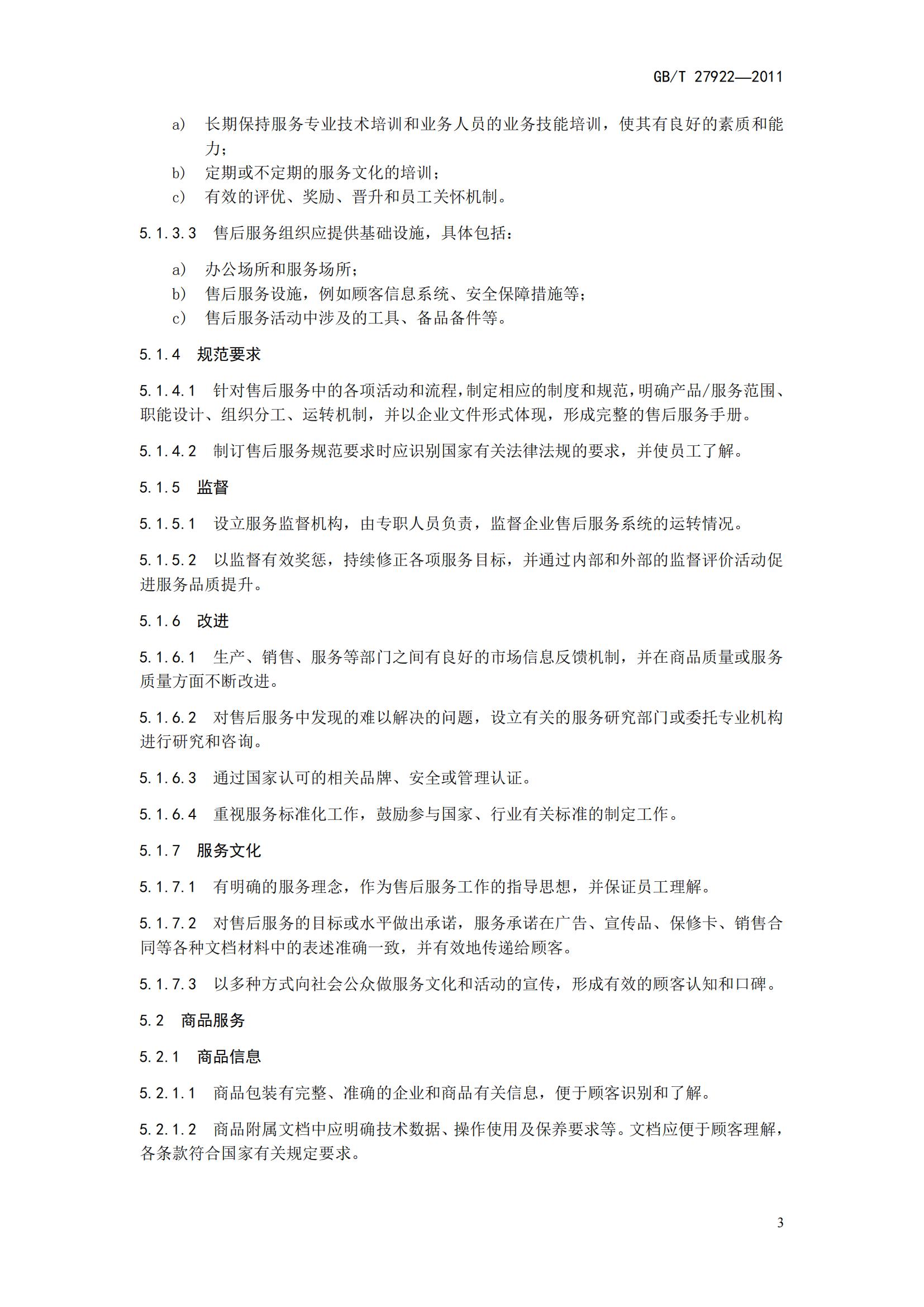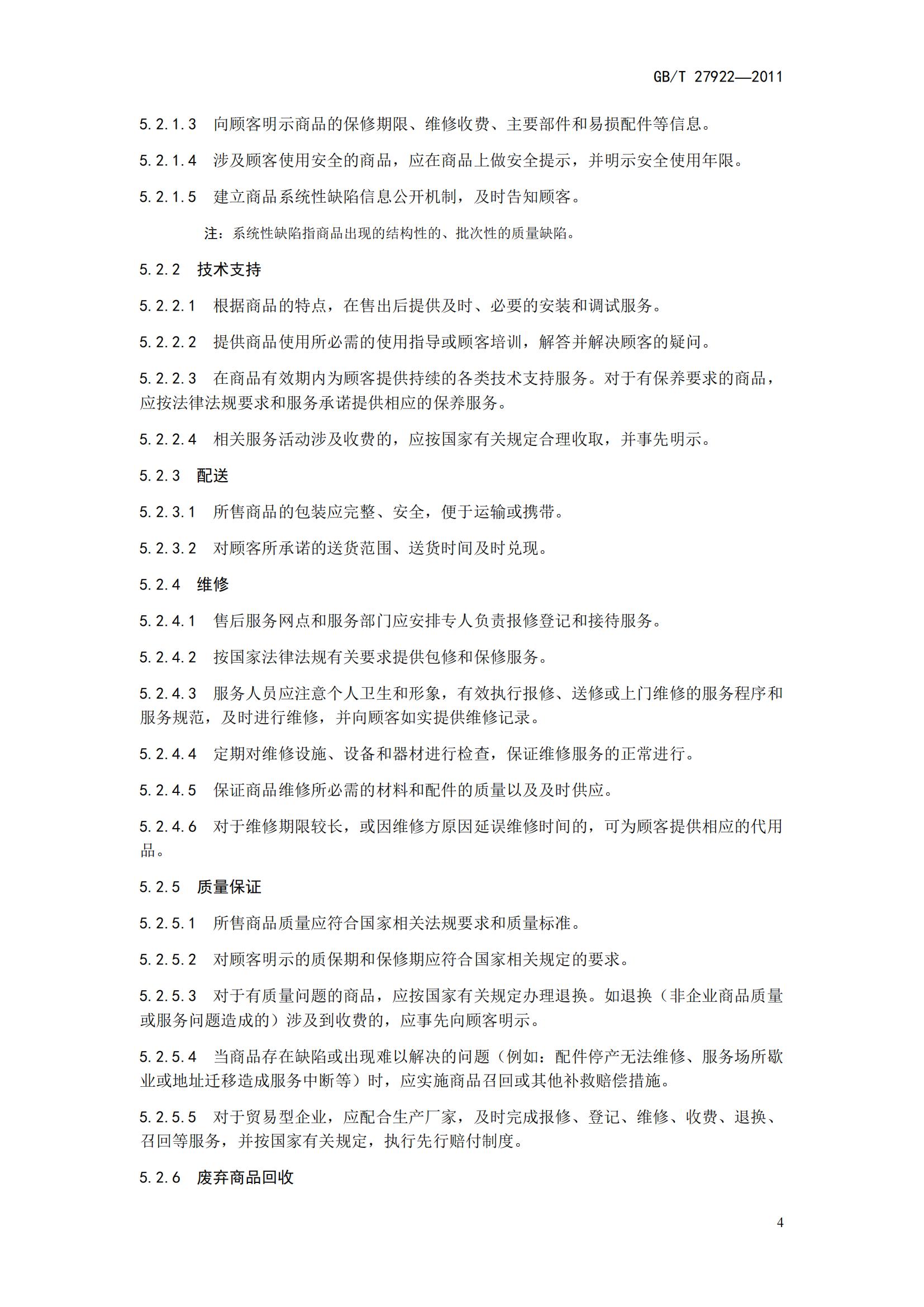 GB/T27922-2011《商品售后服務(wù)評價體系》