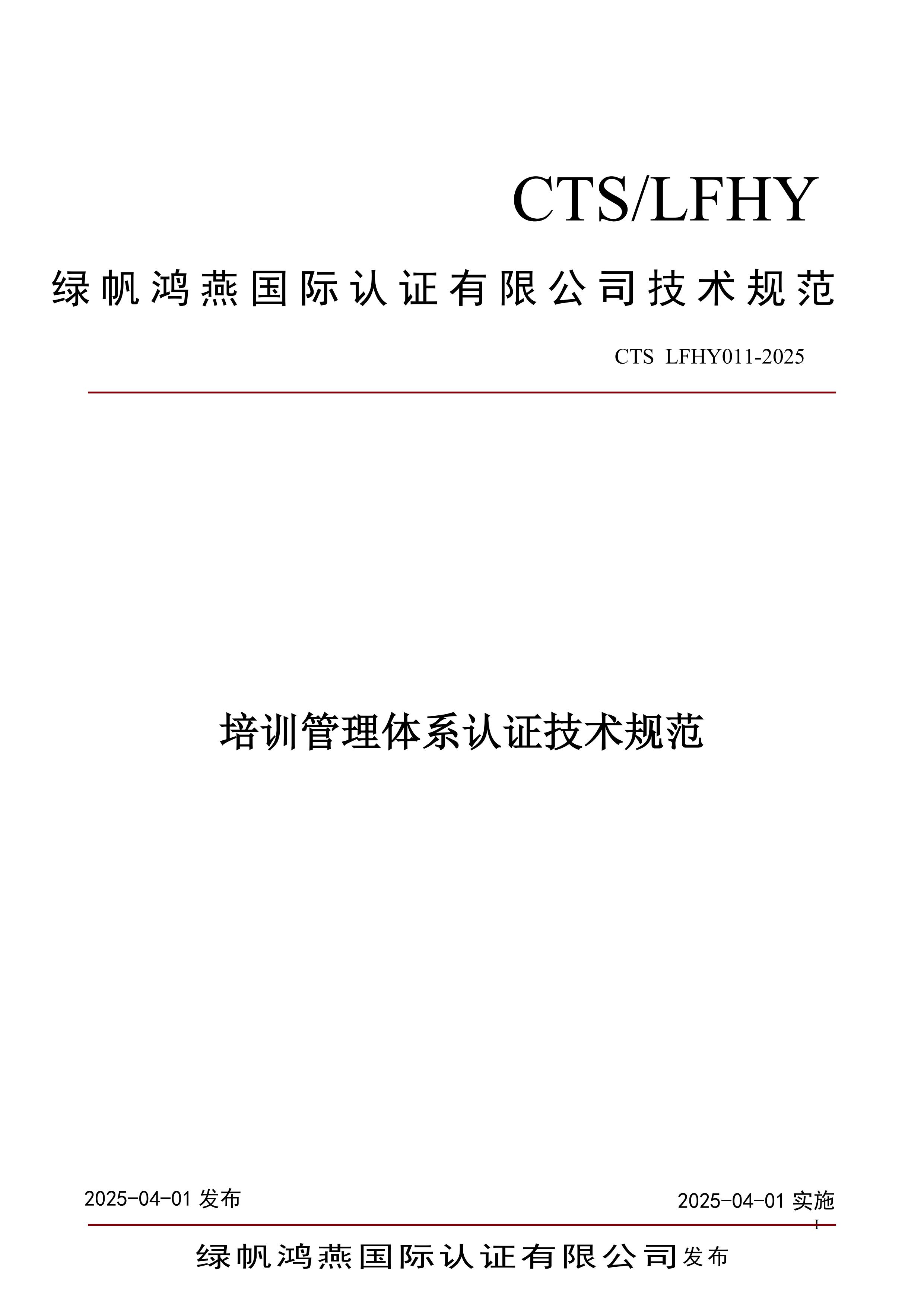 CTS LFHY011-2025《培訓管理體系認證技術規范》【清稿】