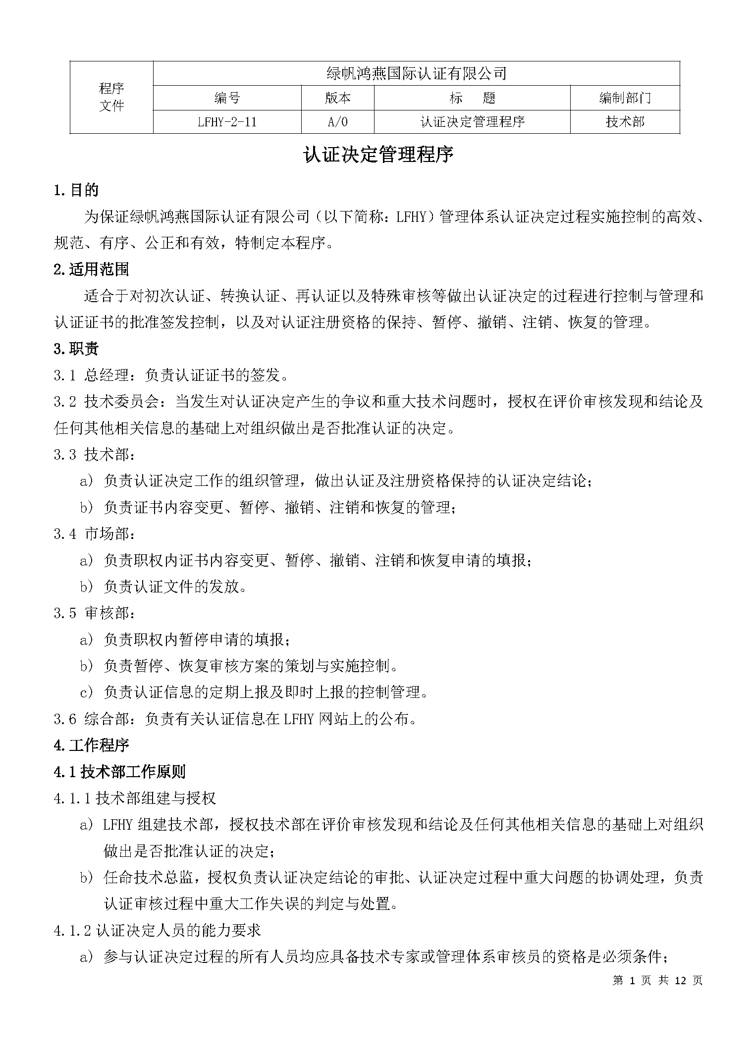 LFHY認證決定管理程序